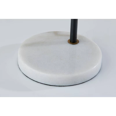 - Round white marble base adds a classic touch to the industrial styling.