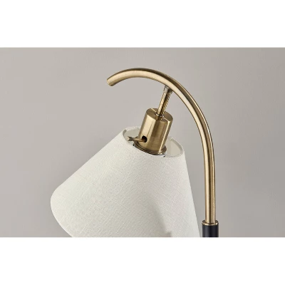 The clean, elegant style lines and blend of materials in the Jerome table lamp make it a stylish addition to contemporary, mid-century modern, or modern chic décor. At 22″ tall, this lamp fits perfectly on desks, nightstands, end tables, or accent tables. The lamp features a 7″ diameter antique brass base supporting a thin arcing stem that transitions from black metal finish to antique brass. Attached to the stem is a cone-shaped shade made of textured white fabric to softly diffuse the light from a 60W bulb (not included). Easily turn the lamp on or off with a rotary socket switch. Complete your space’s décor with the coordinating Jerome floor lamp.